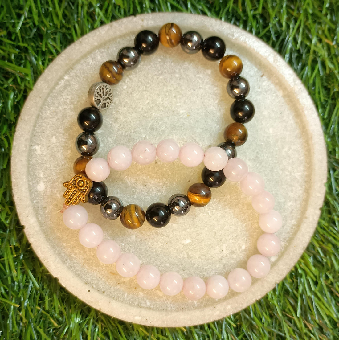 Rose Quartz Bracelet + Triple Protection Bracelet Combo