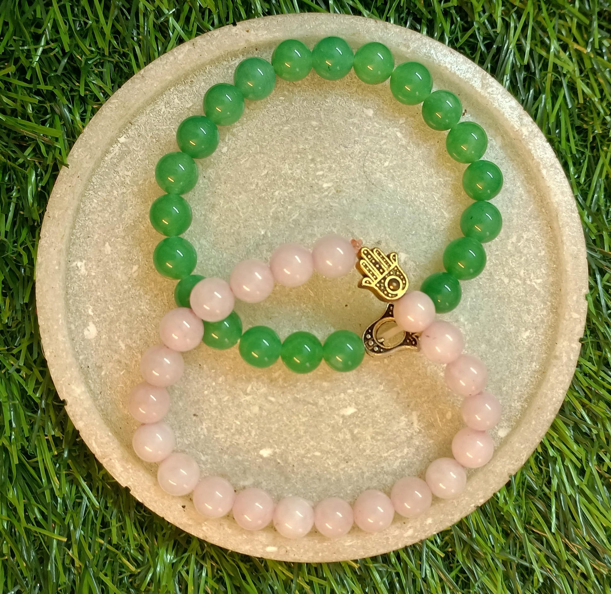 Green Jade Bracelet +Rose Quartz Bracelet Combo