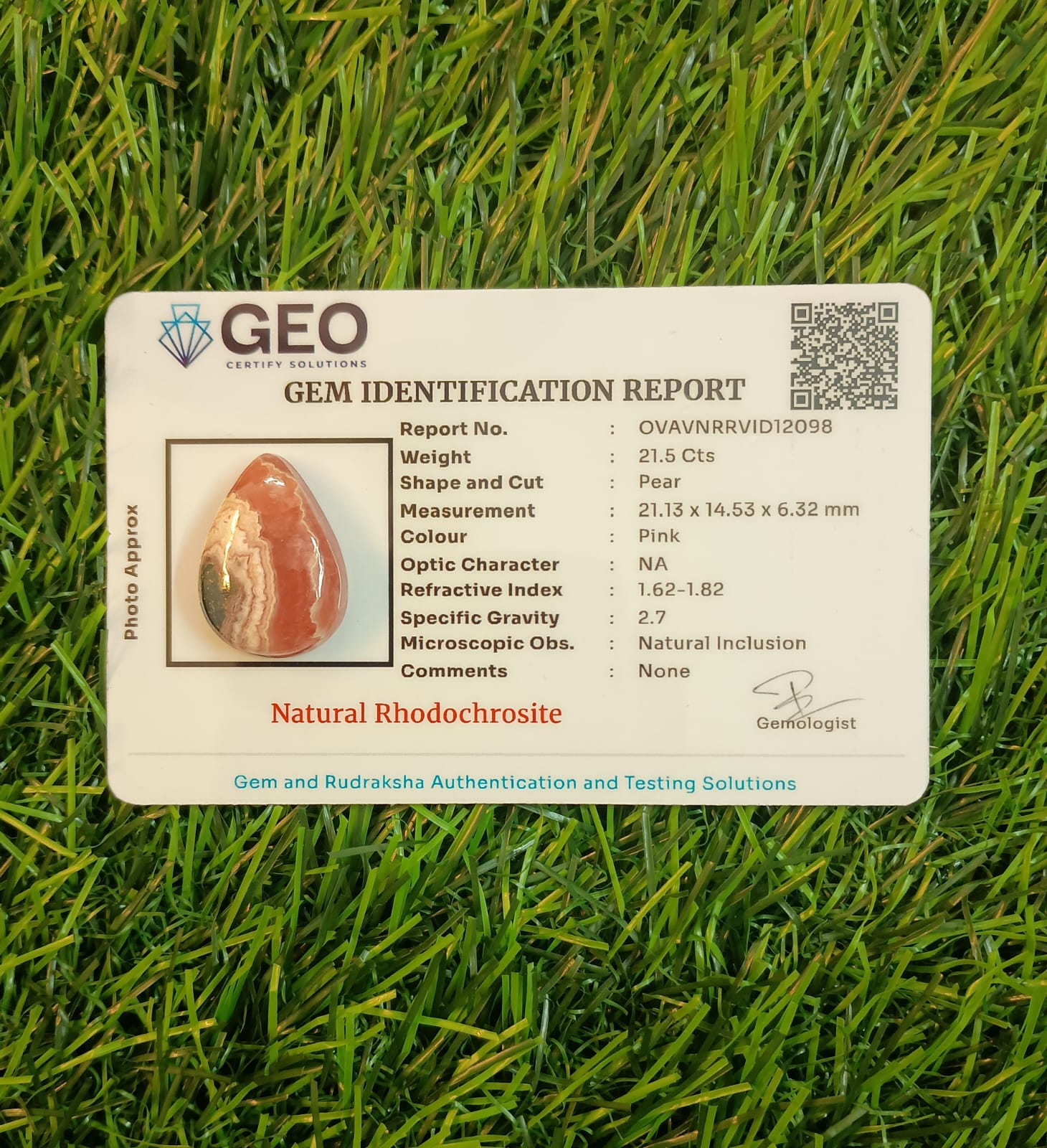 Rhodochrosite - Semi Precious Stone - 21.5 Ct