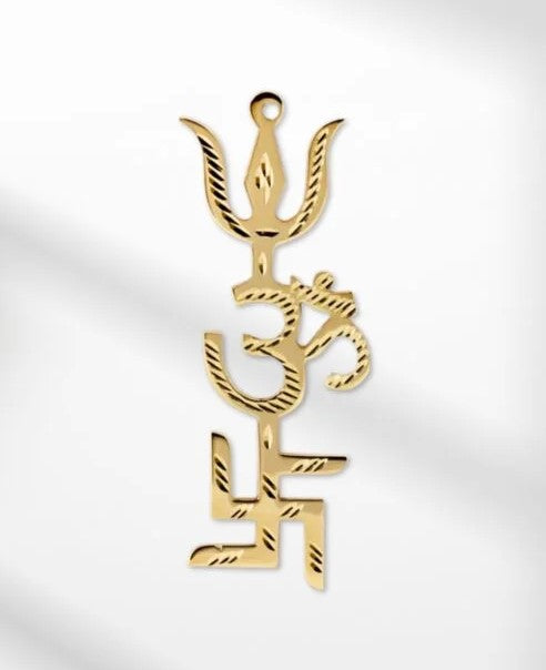 The Om Swastik Trishul Trishakti Yantra is a powerful Vastu symbol combining three auspicious elements in Hindu spirituality: OmSwastika, and Trishul. Each carries profound spiritual significance. Om represents universal consciousness, Swastika brings prosperity and good fortune, and Trishul, associated with Lord Shiva, symbolizes protection and the negativity removal.